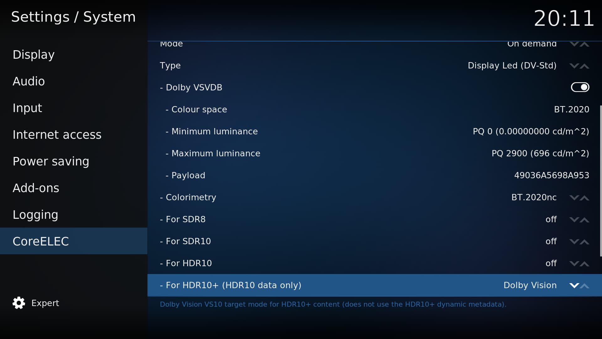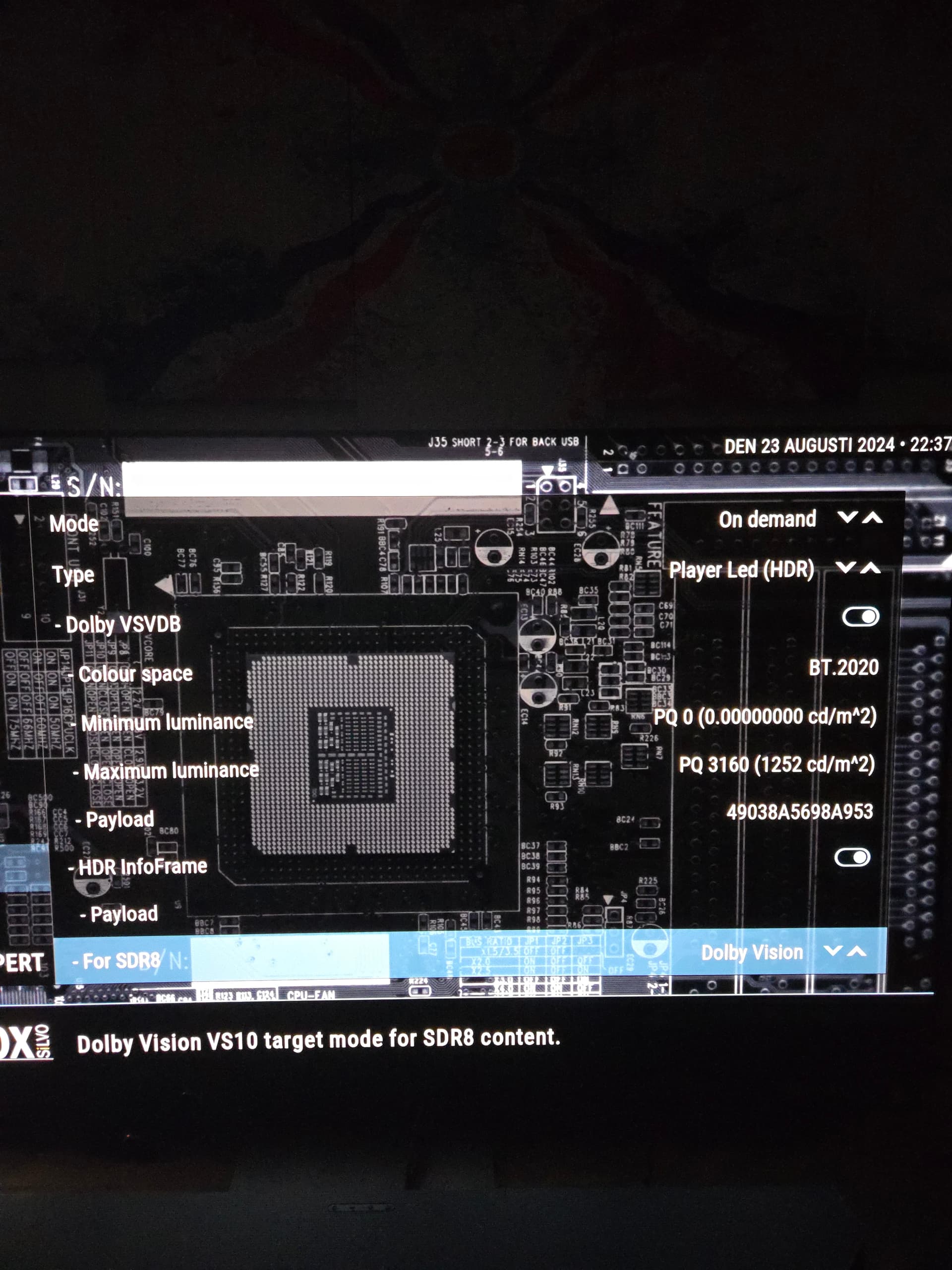 so about the DV settings, that HDR infoFrame, should I enable it? what should the payload be? I checked the excel file but don’t know what I look at haha, this is how my settings are atm, like I mentioned earlier I do have Samsung S90C soft modded to S95C (1300 nits).